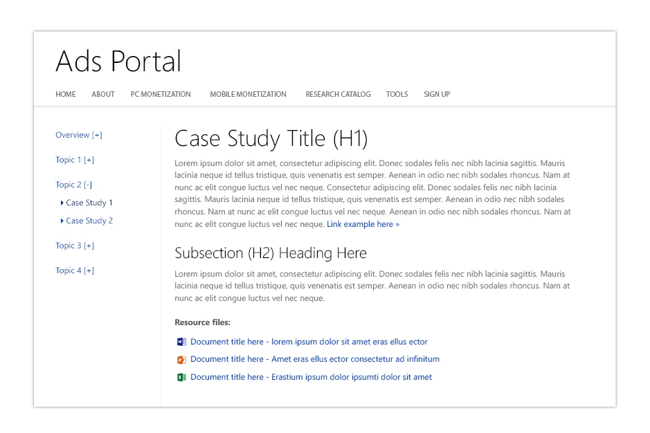 A research team at Microsoft engaged MediaPlant to design and develop a portal to give broad internal access to a specific set of data, and to provide a forum for storytelling around their insights. MediaPlant designed a series of customized, user-friendly dashboards for visualizing the data. Built on the SharePoint platform, the dashboards allow users to pivot the data using filters such as date ranges, product types, and combinations. The data is then displayed in visually compelling table or graph formats, with exportable reports. MediaPlant also created a visual catalog of items referenced in the site, and a wiki for case studies and other documents.