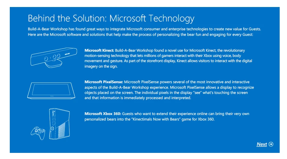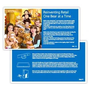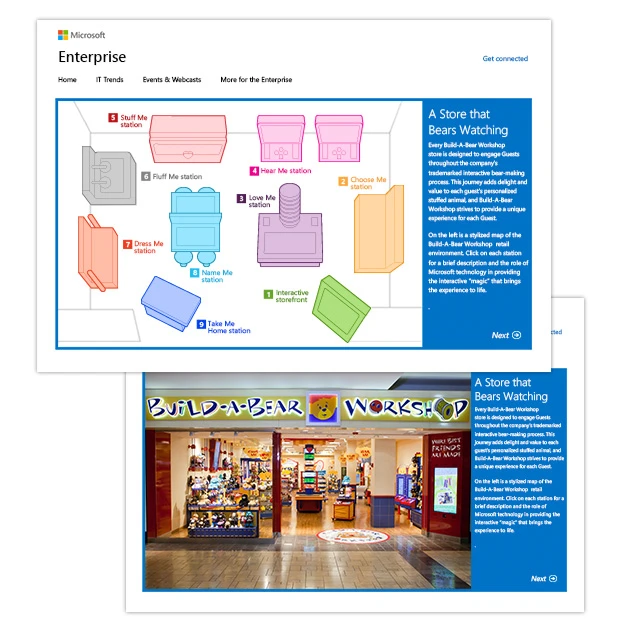 Showing is often better than telling. That's why when Microsoft's Enterprise Partner Group approached MediaPlant for help telling a customer success story, we recommended a visual, interactive case study. Since the customer was a retailer, we designed an illustrated version of the actual sales floor, allowing viewers to "visit" the various Microsoft-powered stations and click through to learn more about the technology solutions at play. In addition to writing and designing the case study, MediaPlant developed it as an online interactive showcase.