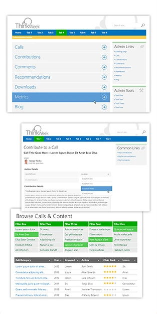 Microsoft’s ThinkWeek started more than 20 years ago when Bill Gates began to take one week a year to step away from daily business and spend dedicated time exploring the thoughts and ideas of great thinkers. As ThinkWeek evolved, hundreds of papers were submitted each year, driving dialog and innovation at all levels of the company. MediaPlant was engaged to redesign and re-platform the ThinkWeek portal to enhance and simplify usability for site users and administrators by improving discoverability of content, including the extensive archive, and facilitating better community interaction. MediaPlant designed the new UI to streamline content search and surfacing, and customized dashboards for facilitating content submissions, the submission review process, and site administration. It was developed on the SharePoint platform using AJAX, JQuery and JSON.