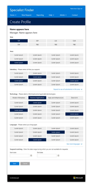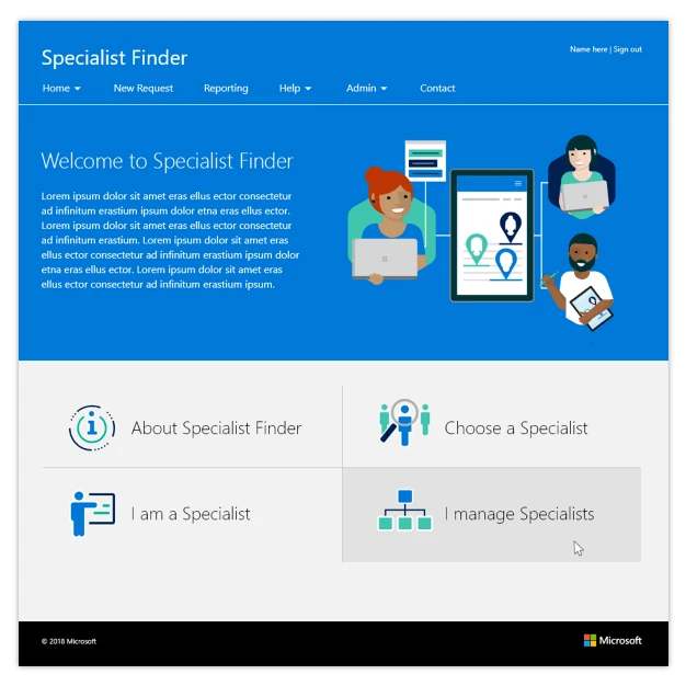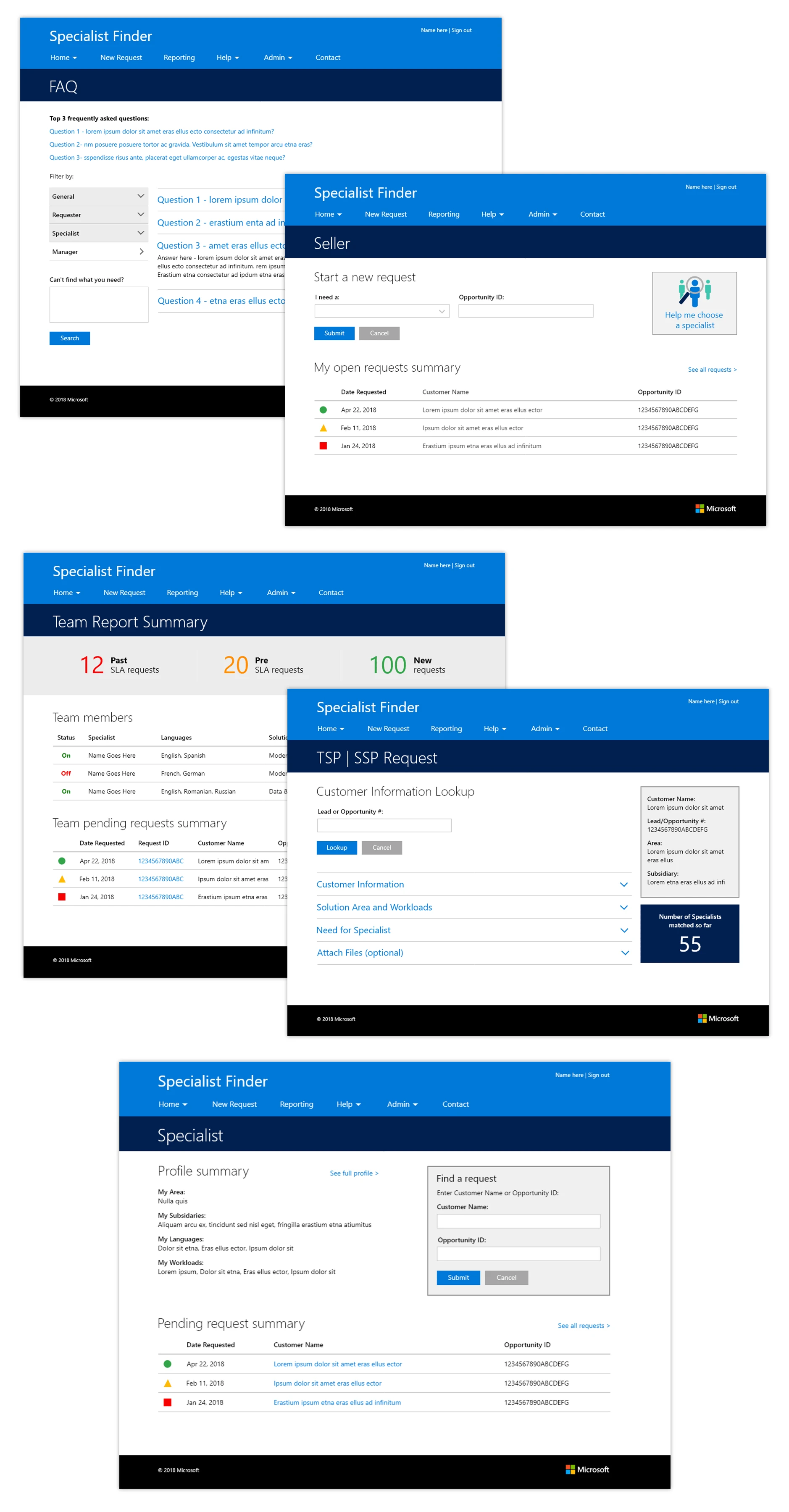 Microsoft’s Worldwide Inside Sales team engaged MediaPlant to develop a Specialist Finder portal to connect account executives with subject matter experts in their organization. The site provides easy access to a global roster of SMEs that can support their sales efforts. Account executives can search for a variety of specialist types and are matched with specialists based on a variety of criteria. Specialists have access to admin tools enabling them to create profiles, manage requests, and review pending and completed engagements. All users—including account executives, specialists and their managers—can view open requests as well as gain insights from Power BI reports tracking requests by region, by volume, and by specialist type. Since launch, the Specialist Finder portal has experienced rapid adoption, and new features are continually being added in response to the growing needs of its' user base.