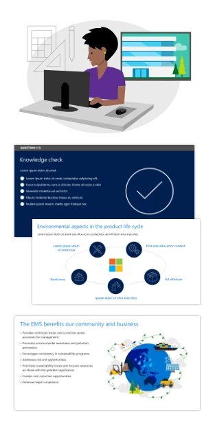 Microsoft firmly believes that sustainable business practices are fundamental to good corporate citizenship, and the company backs it up with a strong commitment to environmental stewardship. To successfully implement their Environmental Management System, Microsoft Devices’ EMS team needed an effective way educate employees on practical methods to reduce the company’s impact on the environment. MediaPlant developed an interactive training course using design and media elements to communicate the specifics of the EMS program, including knowledge checks and quizzes to validate learning and certify participants. We also worked with the internal Microsoft training platform team to deploy the course, and also continue to provide post-launch technical support.