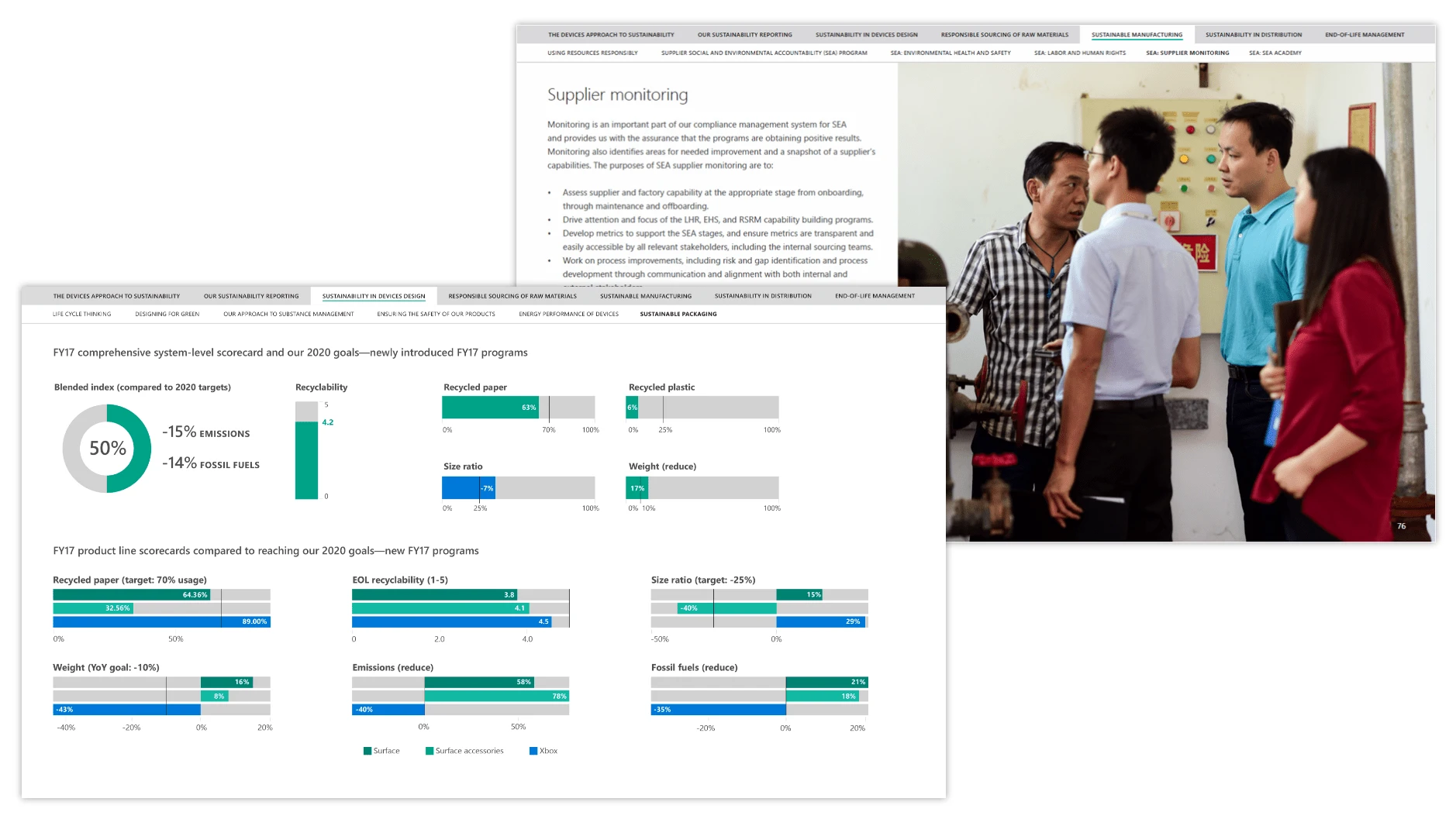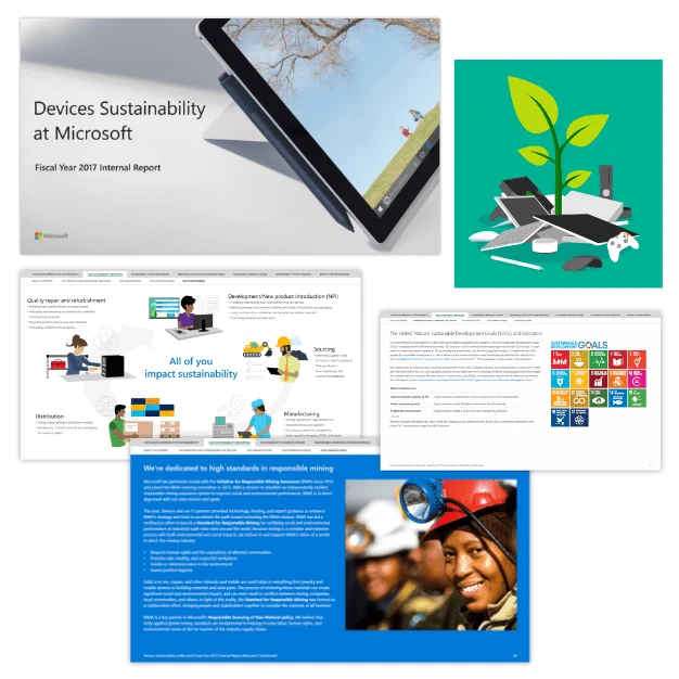 This deluxe annual report demonstrates Microsoft’s commitment to sustainable business practices by publicly documenting the company’s compliance efforts around corporate responsibility. The Devices group engaged MediaPlant to enhance the report with an accessible design that clearly communicates their sustainability goals, highlights their numerous achievements, and conveys their strategy for forward progress. We deployed visual components for maximum impact: a branded color palette with a pleasing range of blues and greens to suggest unspoiled natural settings; illustrations that command attention while reinforcing the high-level story with visual metaphor; complex data condensed into appealing, easy-to-read infographics. Navigation within the report is intuitively easy, enabling quick access to nested sub-sections of information dense content. The completed report is easy to consume and efficiently communicates key information without losing sight of necessary detail.